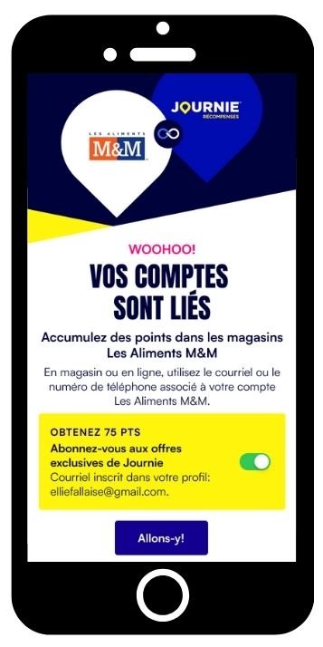R : Oui, vous devez avoir une adresse de courriel enregistrée avec votre compte de récompenses de Les Aliments M&M pour lier ce compte à votre compte de récompenses Journie.